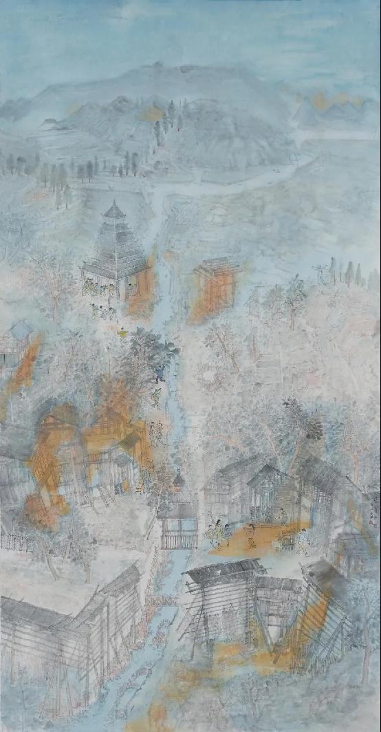 黄冈师范学院 方艳《古寨新韵》中国画纸本设色180cm×97cm