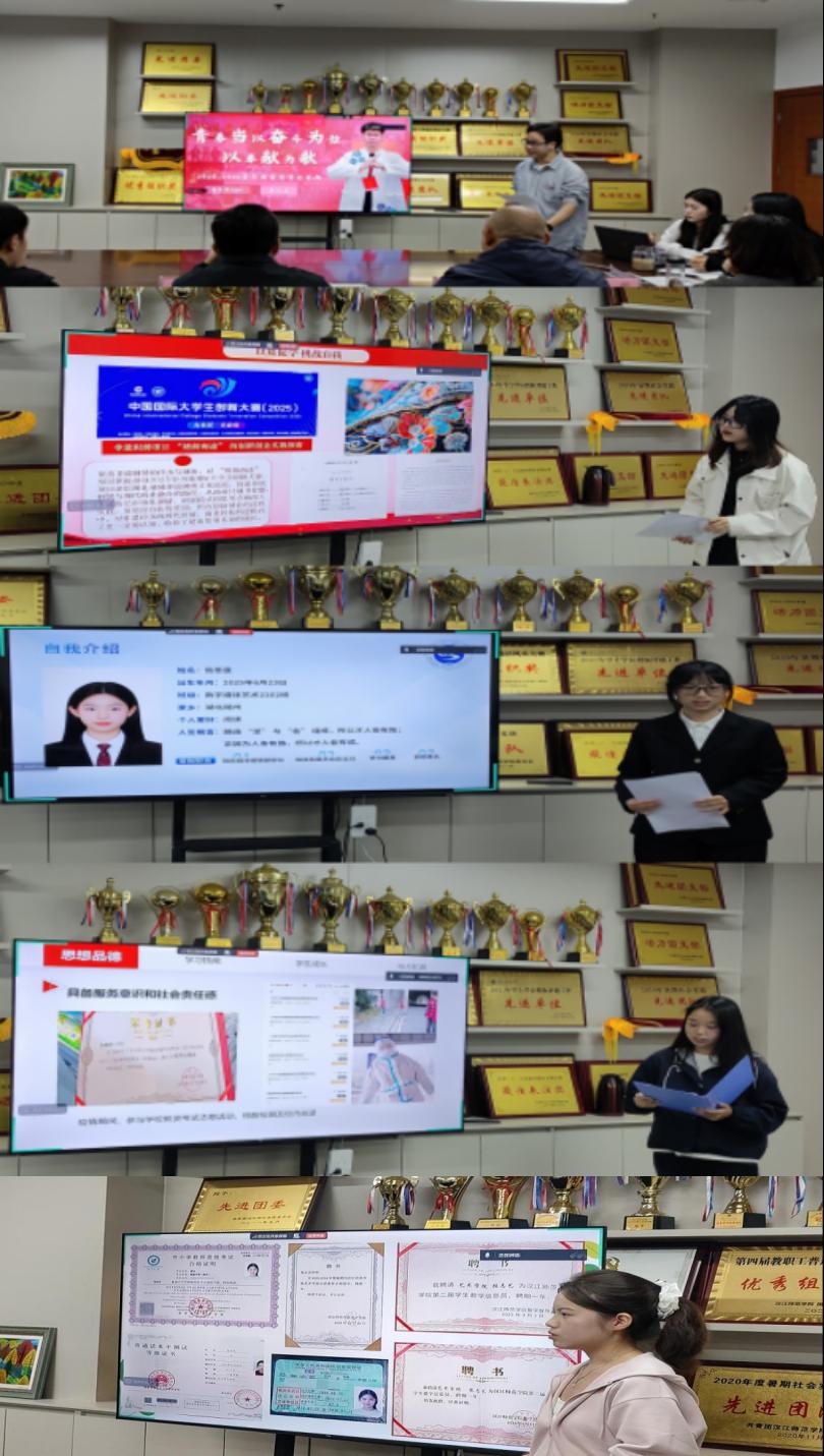 评审委员会由学院分党委书记刘飞、副院长石永松、分党委副书记崔蕾、学工办主任李小龙及各年级辅导员华雯雯、高蕊、郑冉共同组成,从多维度对候选人进行综合考评。