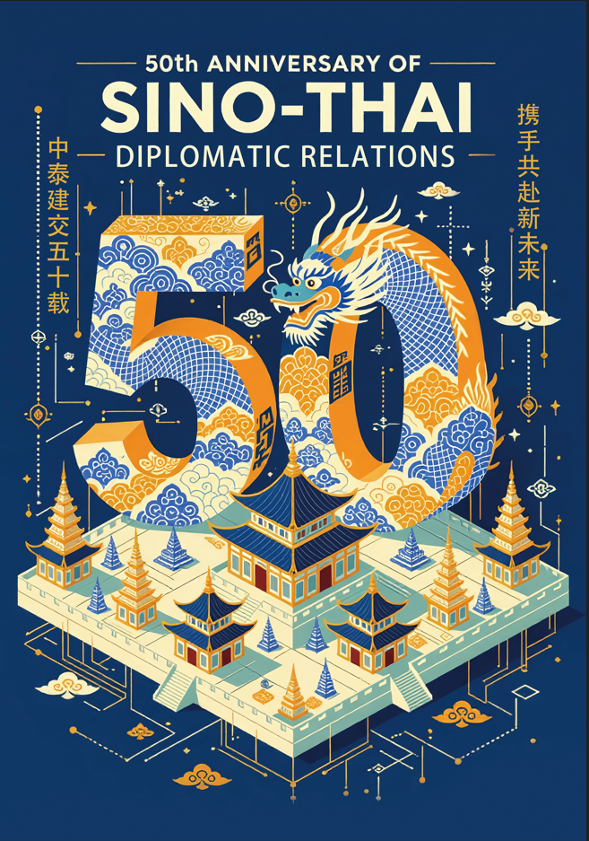 数媒专业教师陶万样设计作品-《龙象共舞五十载,中泰情谊谱新篇》