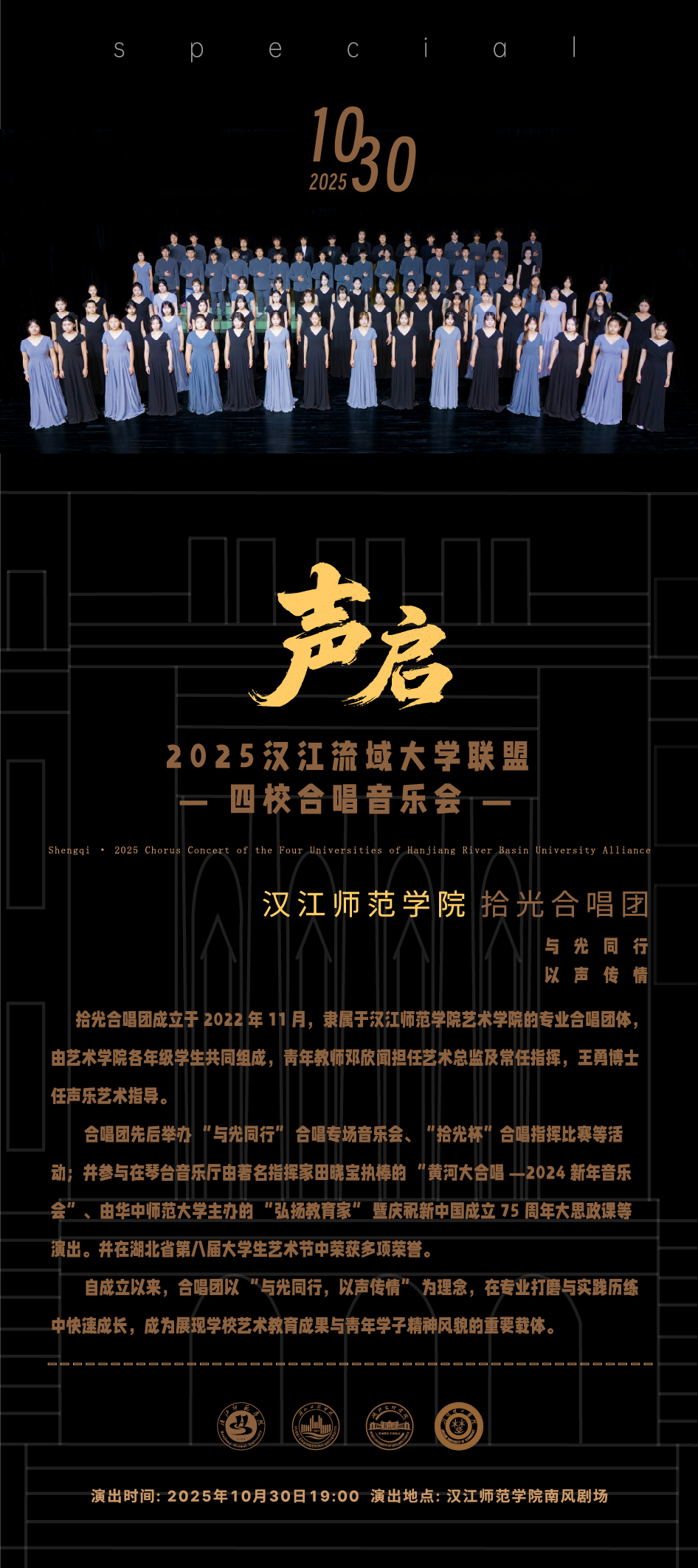 当汉江的千年涛声遇上青春的嘹亮歌喉,当非遗硪歌的古朴韵律碰撞现代合唱的恢弘和声 —— 一场横跨四校的音乐盛宴即将启幕!