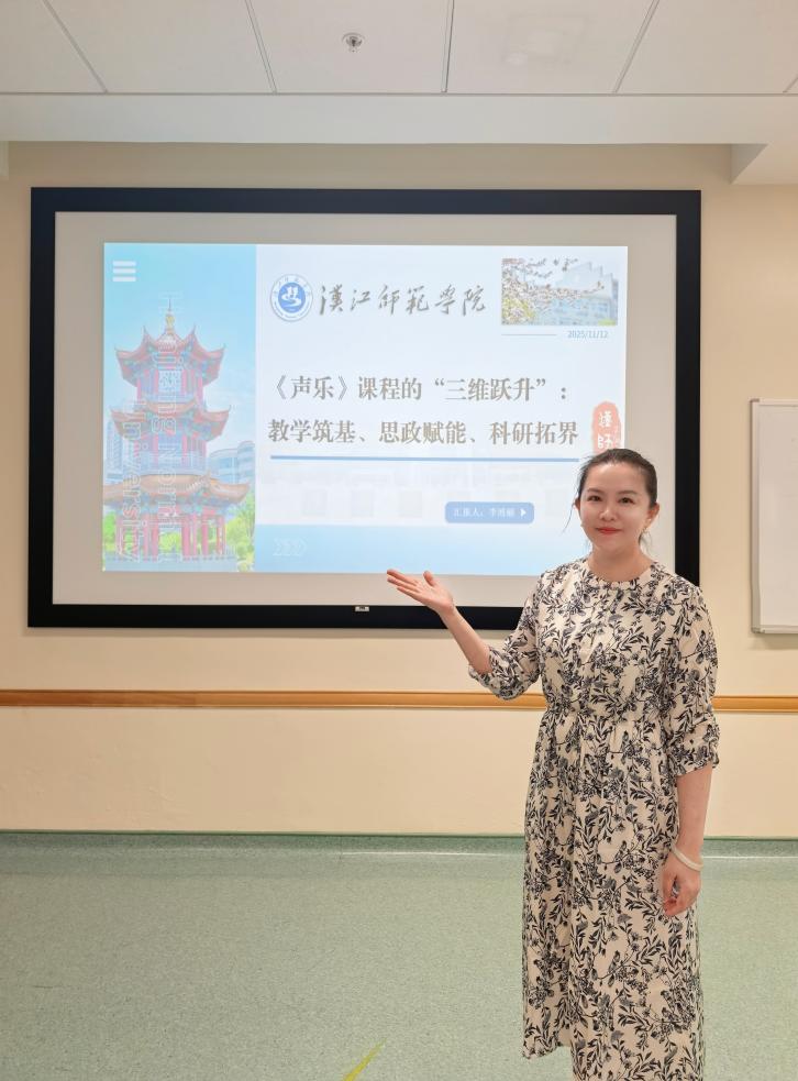 11月12日,我院音乐学专业教师李博丽在获国家教育部留学基金委员会资助、赴新加坡南洋理工大学国立教育学院访学期间,于同期举办的教育学术论坛上,以《声乐》课程“三维跃升:教学筑基、思政赋能、科研拓界”为主题,向来自全国32所高等师范院校的专家学者代表作专题汇报。她系统分享了我校音乐学师范专业在课程改革与质量提升中的实践经验,不仅为专业认证工作提供了鲜活案例,更充分展现了我校教师教育的深厚积淀与创新活力。