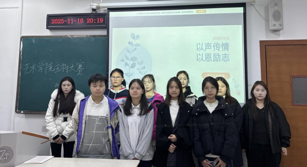 11月16日,我院励志感恩主持人大赛在尚艺楼A203举行。本次大赛以“以声传情,以恩励志”为主题,旨在弘扬感恩精神,展现青年学子语言风采,通过声音传递励志能量。来自全院各专业的20余名选手参与角逐,最终5位同学荣获院级“优秀主持人”称号。