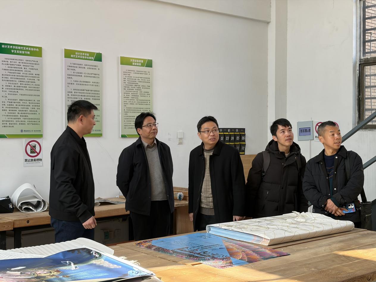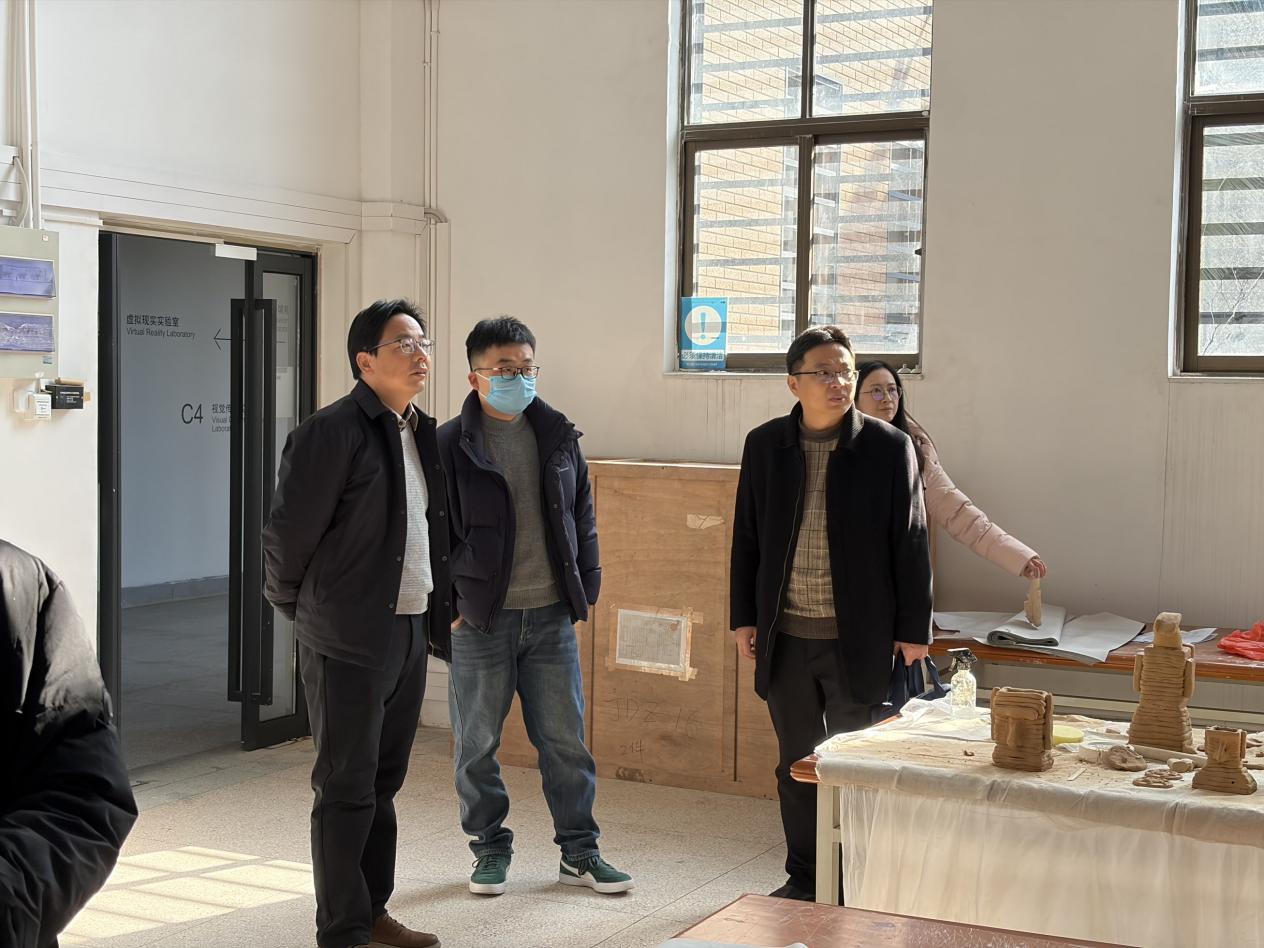 宣讲结束后,在段为松的陪同下,刘飞一行参观了设计艺术学院的实训教学场所、主题画展及元青花瓷馆,实地了解了该院在专业建设、实践教学与文化传承方面的成果与特色。