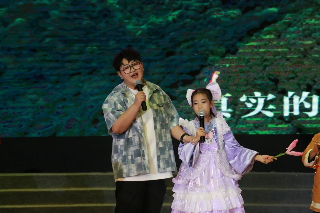 简稳同学顶住质疑,坚持以抒情歌曲《萱草花》打造歌伴舞节目,通过“教师领唱、情景演绎、学生伴舞”的创新形式,传递母爱与坚守的真挚情感,演出时台下掌声雷动,成为整场展演的暖心亮点。赵吉睿同学牵头编排歌舞串烧《哈尼宝贝》,串联《萱草花》《向云端》等四首歌曲,同时指导六年级学生用瓶盖、塑料袋等废弃材料制作42套时装,呈现创意十足的环保时装秀,其二胡独奏《赛马》更是以激昂旋律契合马年喜庆氛围。
