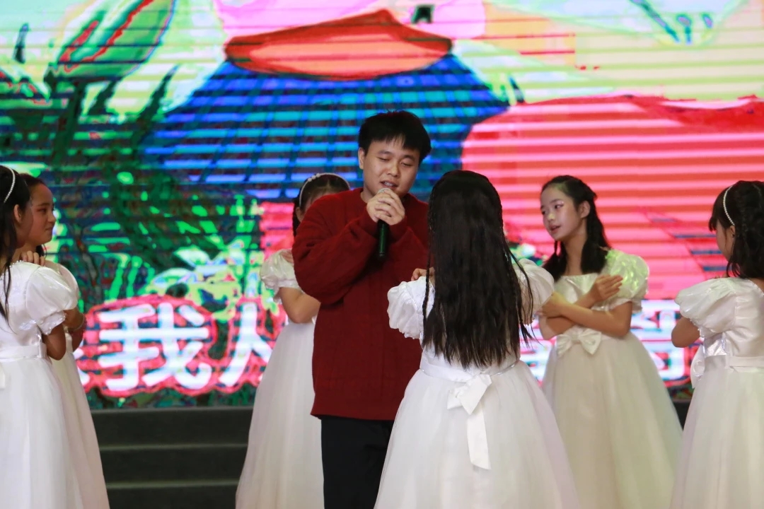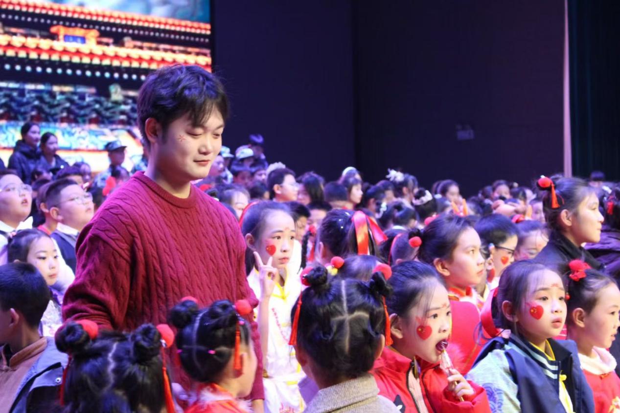 音乐学专业周永康同学担任一年级音乐教师及合唱团指导,针对低年级学生注意力易分散的特点,巧用趣味儿歌、拍手律动、卡通教具开展教学,带领孩子们唱响《娃哈哈》《小星星》,见证着孩子们从羞涩内敛到放声歌唱的蜕变,用旋律守护童真初心。