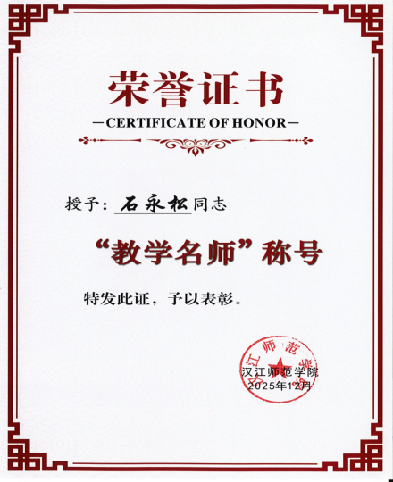 近日,汉江师范学院首届“教学名师”评选结果揭晓,艺术学院副院长石永松教授获此殊荣。这位深耕艺术教育一线数十载的教师,以扎实的专业功底与深厚的育人情怀,在武当山下书写着高校教师的美育答卷。